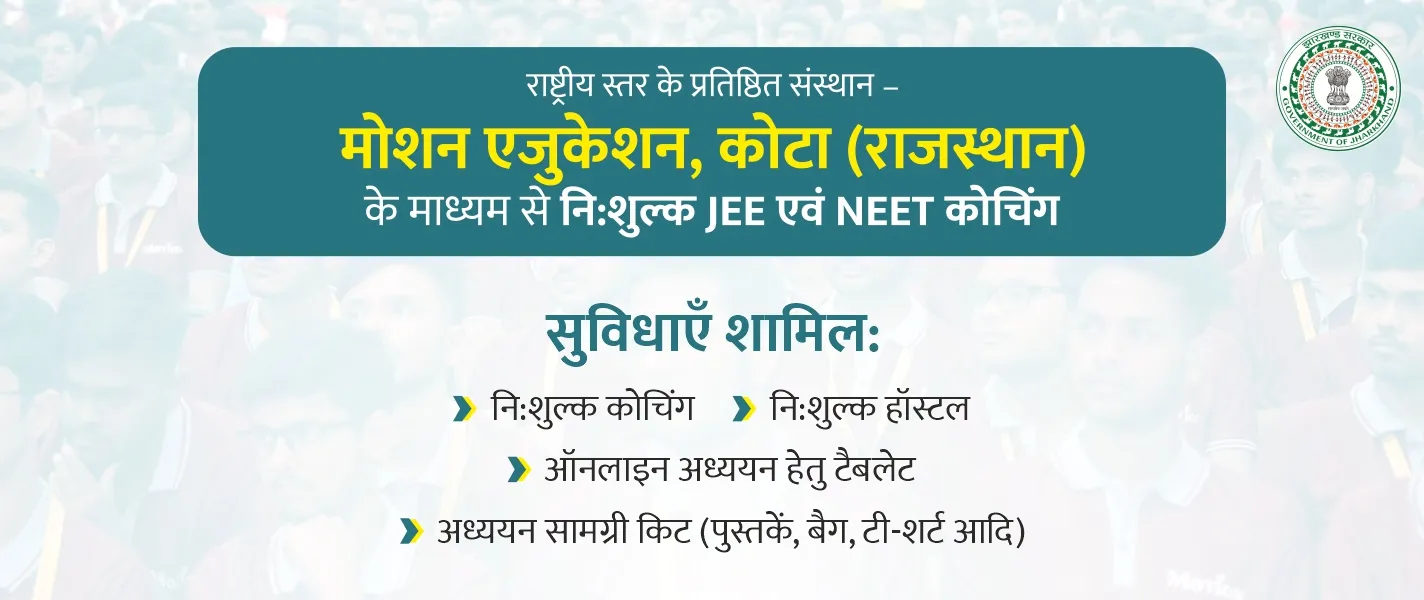 माननीय मुख्यमंत्री जी एवं कल्याण मंत्री महोदय की मंशा के अनुसार हमने झारखंड के अनुसूचित जनजाति के विद्यार्थियों के लिए यह योजना प्रारंभ की है। यह केवल एक कोचिंग कार्यक्रम नहीं, बल्कि शिक्षा के क्षेत्र में समावेशी विकास की दिशा में एक संकल्प है। हमारा उद्देश्य है कि राज्य के प्रत्येक विद्यार्थी को JEE/NEET जैसी राष्ट्रीय स्तर की प्रतियोगी परीक्षाओं के लिए श्रेष्ठ मार्गदर्शन एवं संसाधन प्राप्त हों।योजना के तहत चयनित विद्यार्थियों को नि:शुल्क आवास, भोजन, अध्ययन सामग्री (किताबें, बैग, टी-शर्ट आदि), ऑनलाइन अध्ययन के लिए टैबलेट और सतत मार्गदर्शन की सुविधा दी जाएगी। सभी छात्रावास एवं अन्य सुविधाएं पूरी तरह नि:शुल्क रहेंगी।